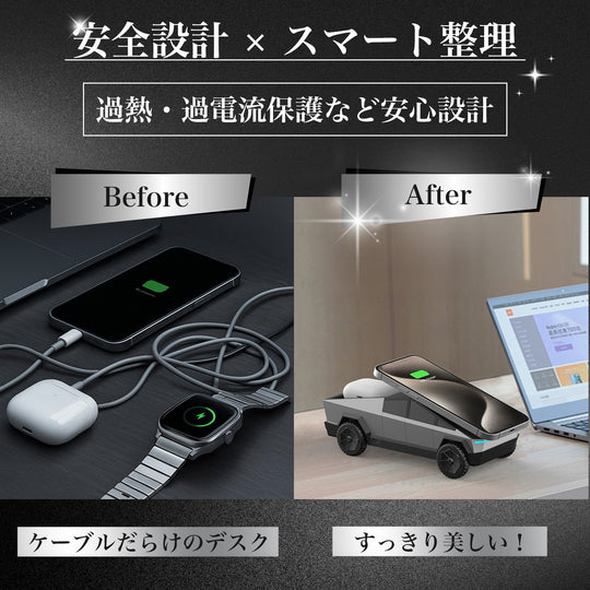 サイバードック Cybdedock サイバートラック型スマホ・AirPods・AppleWatch充電器