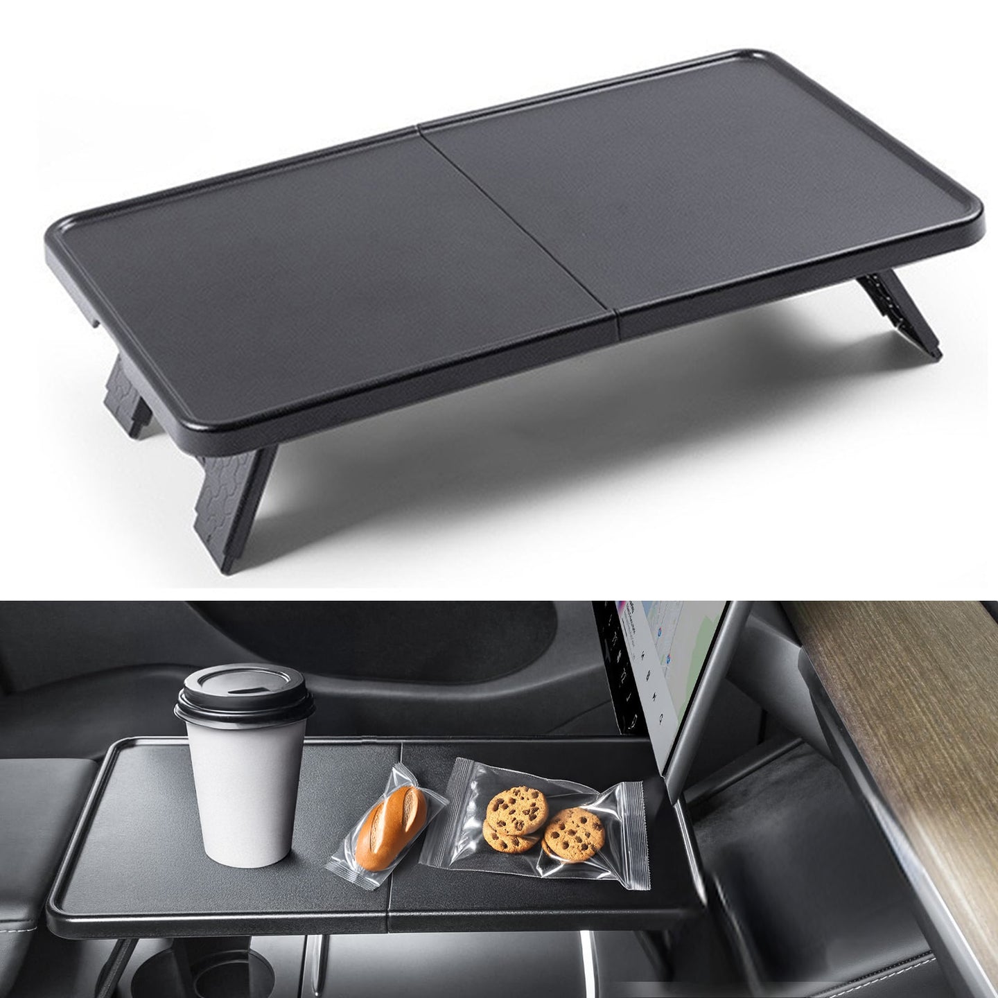 車内ランチやドリンクタイム、ノートPCでの作業、タブレットでの映画鑑賞など、使い方は自由自在。助手席の前でちょっとしたデスク代わりにもなり、ドライブ中の休憩やテレワークにも最適です。快適な“マイ・スペース”をあなたのTeslaの中に。