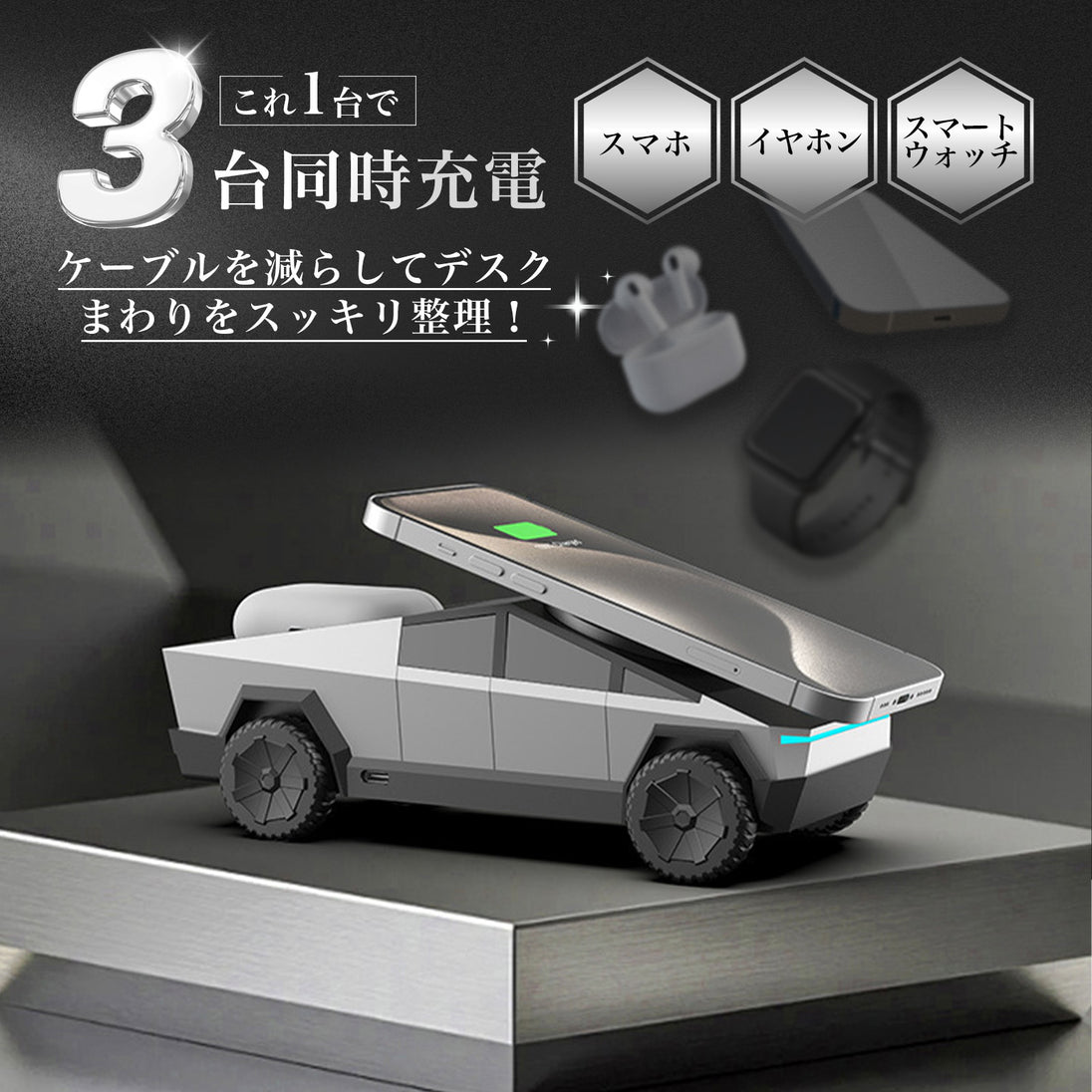テスラ サイバートラックをイメージした無骨でスタイリッシュな外観がデスクやベッドサイドを引き締めます。